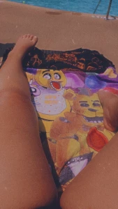 Some thighs and peets by the pool also yes that is a fnaf beach towel